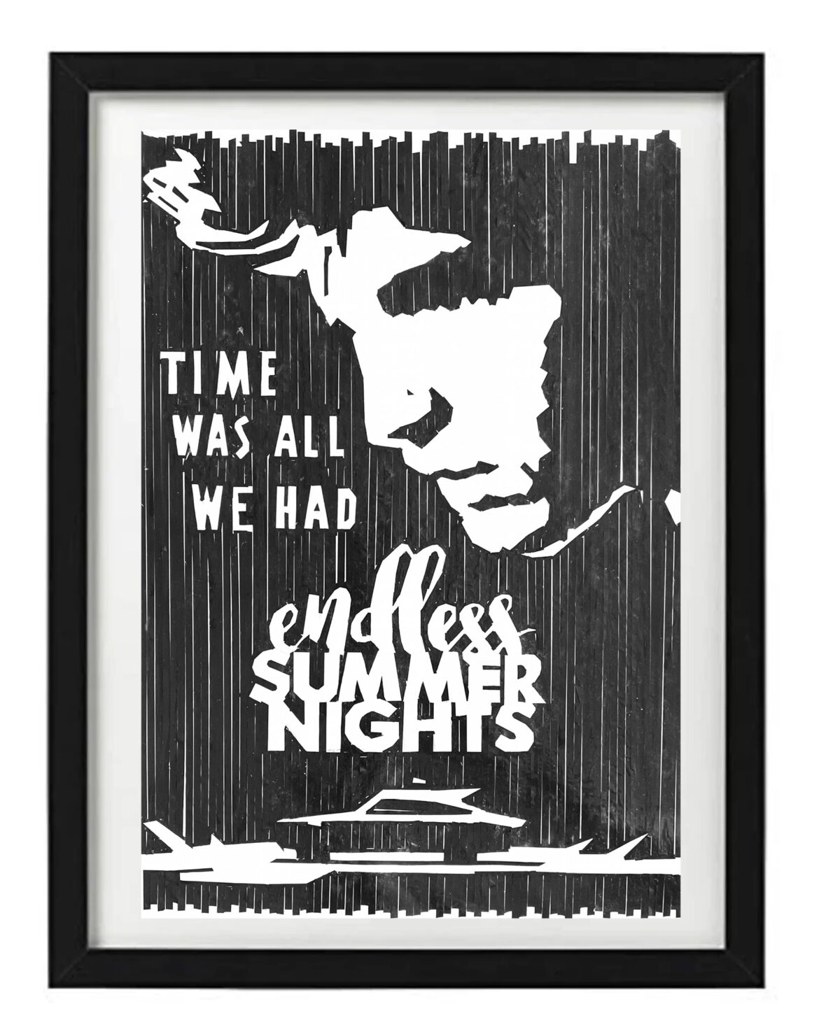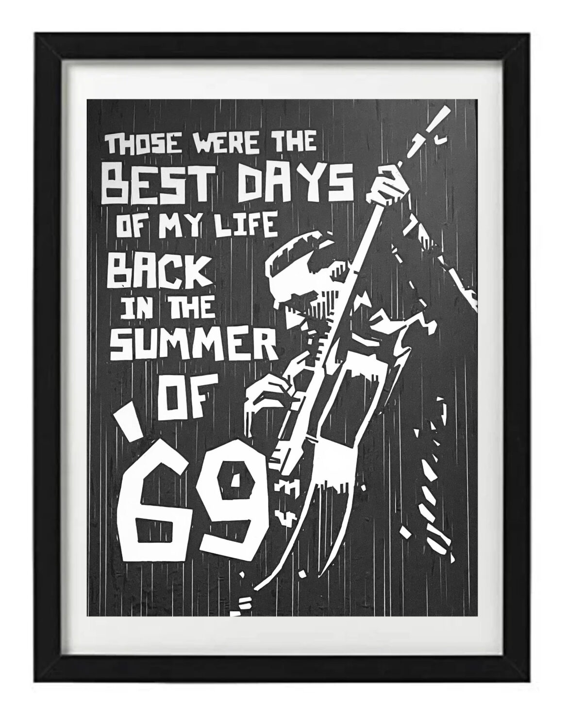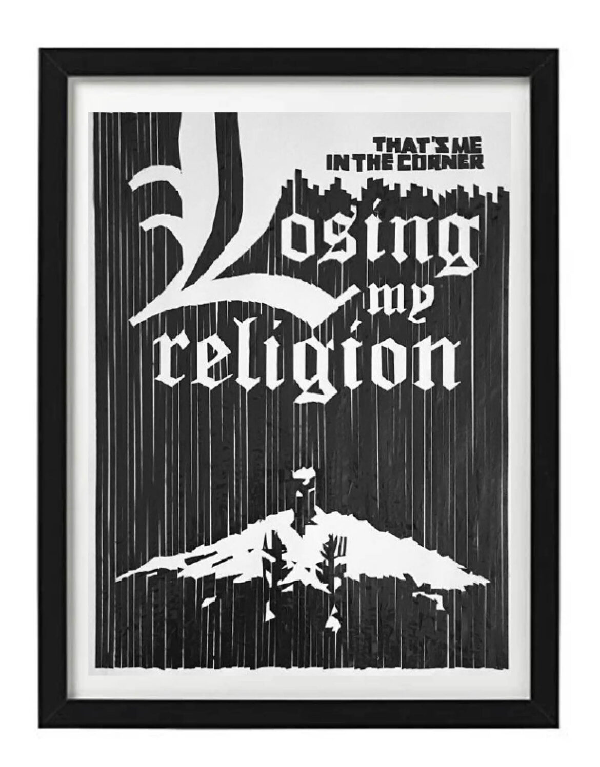 Over the past year I’ve moved onto creating song title or lyrics based artworks of classic songs that my generation grew up on. By using elements associated with the song, either by way of the lyrical content or associated album art or familiar music video visuals, these works have been a joy to create. From designing the artwork to rendering it with tape, the process is highly challenging and rewarding, and the final product serves as a handmade tribute to and a reminder of the greatness of the artists and their musical works.